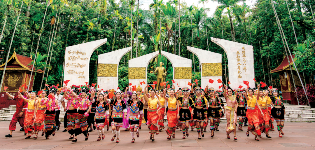 “周總理身穿對(duì)襟白褂、咖啡色長(zhǎng)褲,頭上包著一條水紅色頭巾,笑容滿(mǎn)面地來(lái)到人群中。他接過(guò)一只象腳鼓,敲著歡樂(lè)的鼓點(diǎn),踩著鳳凰花鋪成的‘地毯’,同傣族人民一起跳舞。”這是小學(xué)語(yǔ)文二年級(jí)上冊(cè)第17課的課文《難忘的潑水節(jié)》中的文字,也是擁有1300多年歷史的西雙版納最古老公園——景洪市曼聽(tīng)公園入園第一景:周恩來(lái)總理與西雙版納各族人民歡度潑水節(jié)紀(jì)念銅像描繪的瞬間(備注...